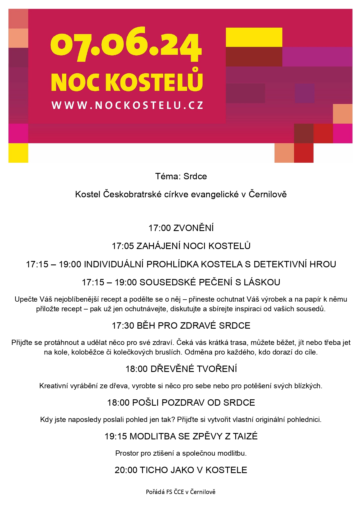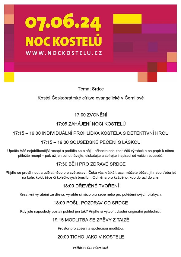 Českobratrská církev evangelická vás zve na noc kostelů, dne 7. června od 17:00 hodin.
